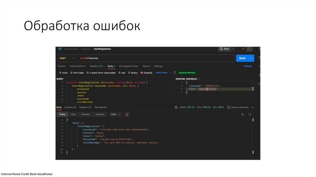 Обработка ошибокInternal Home Credit Bank Kazakhstan