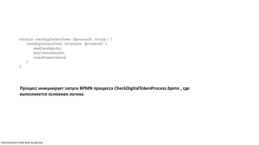 Процесс инициирует запуск BPMN процесса CheckDigitalTokenProcess.bpmn , гдевыполняется основная логика