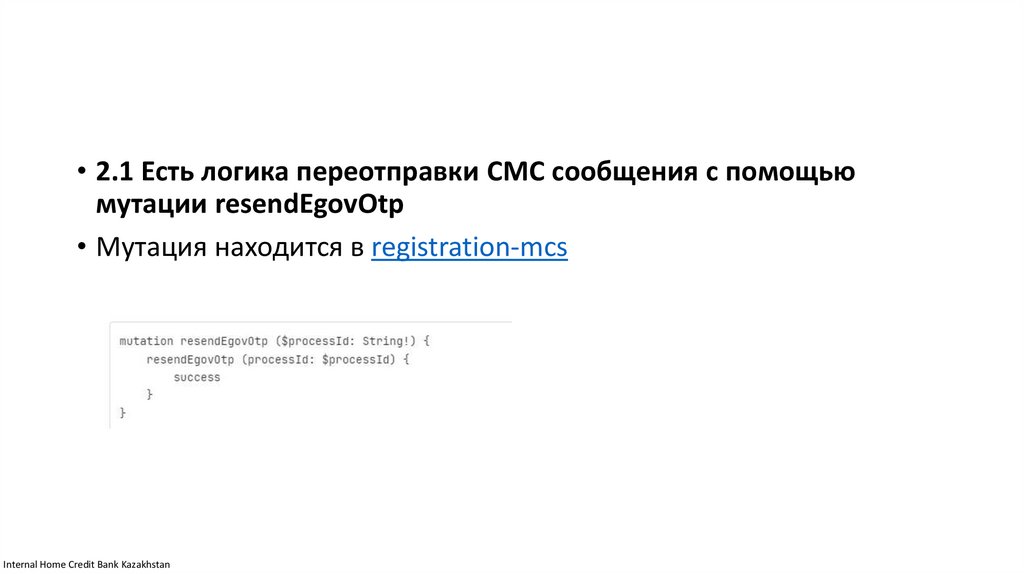 • 2.1 Есть логика переотправки СМС сообщения с помощьюмутации resendEgovOtp