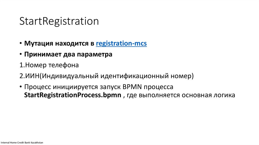 BPMN процесс startRegistration.bpmnInternal Home Credit Bank Kazakhstan
