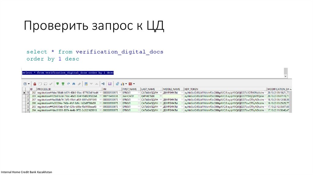 Пример запроса checkIINInternal Home Credit Bank Kazakhstan