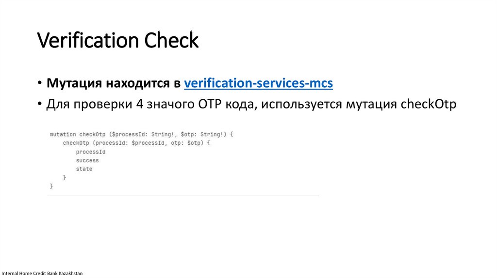 • Для проверки 4 значого ОТР кода, используется мутация checkOtp