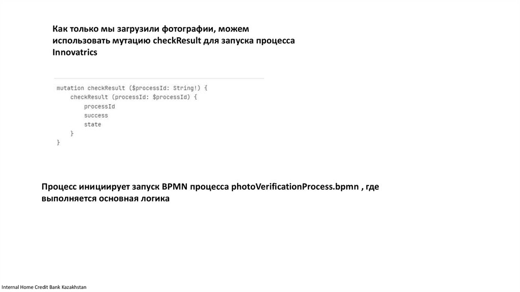 Как только мы загрузили фотографии, можемиспользовать мутацию checkResult для запуска процесса