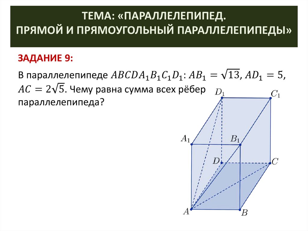 Параллелепипед. Прямой и прямоугольный параллелепипеды