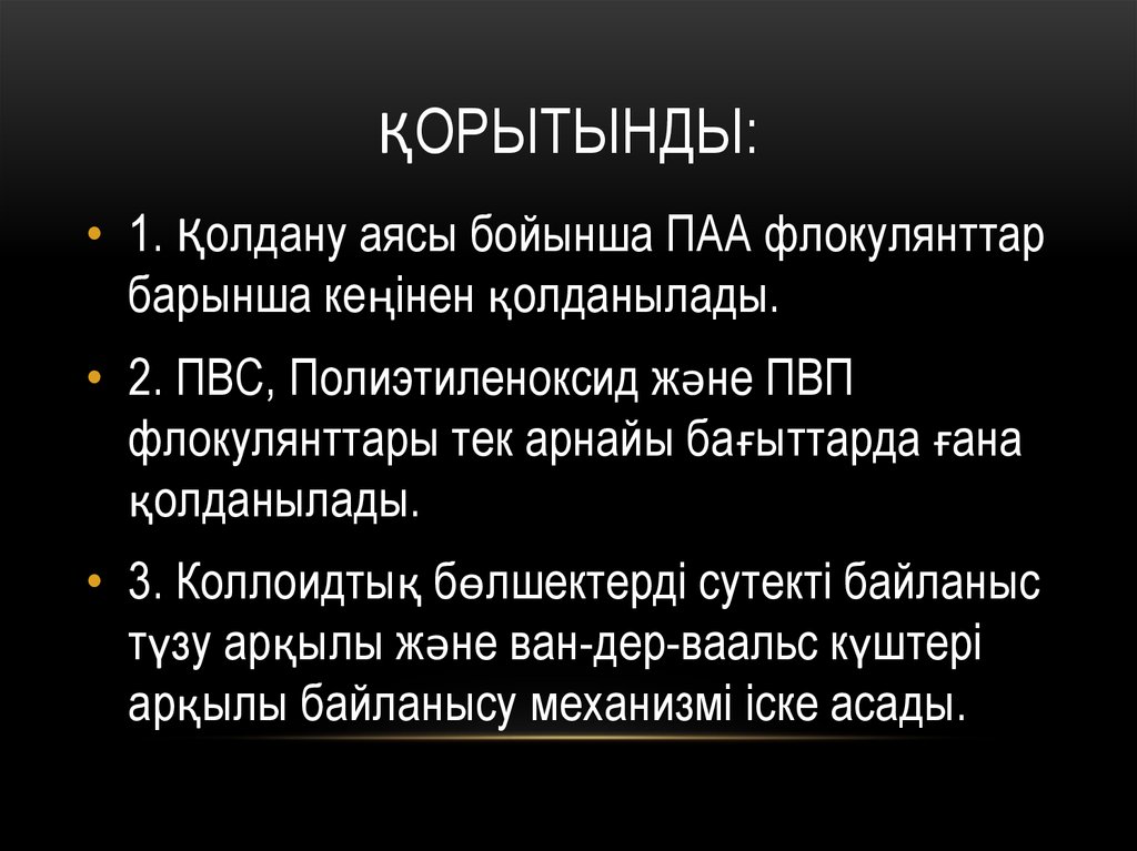 ҚОРЫТЫНДЫ:• 1. Қолдану аясы бойынша ПАА флокулянттар