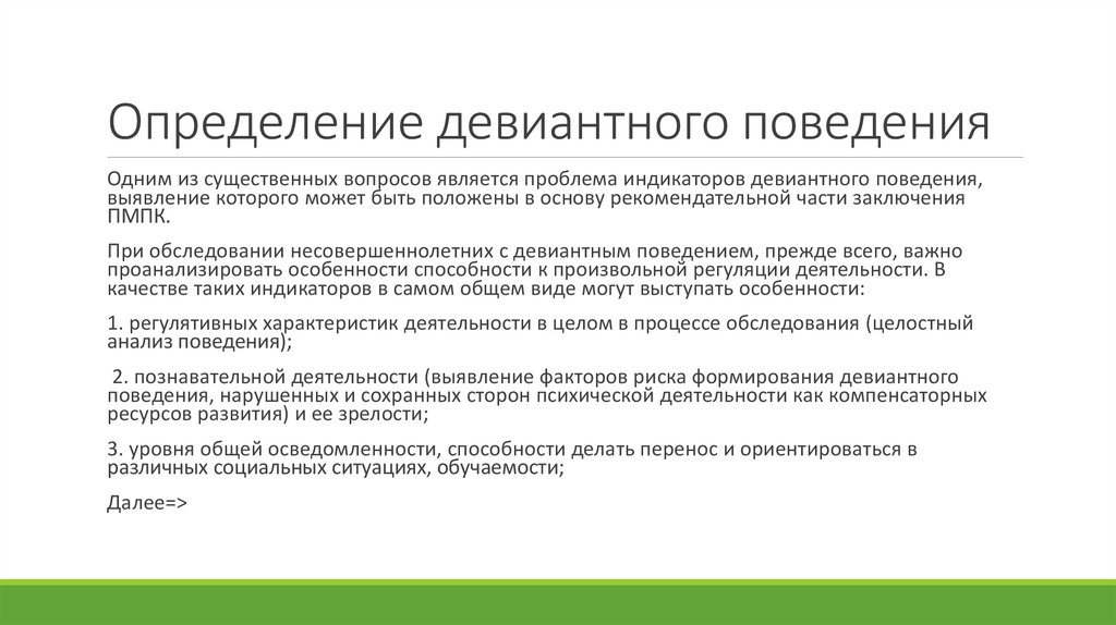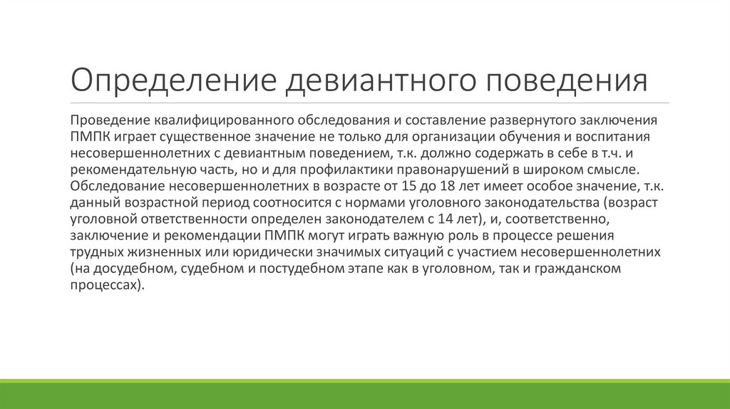 Определение девиантного поведенияПроведение квалифицированного обследования и составление развернутого заключения