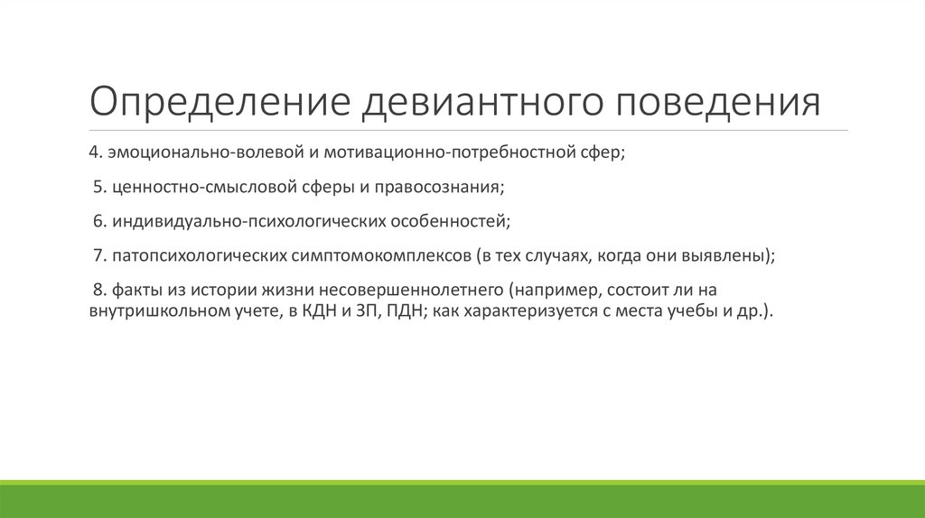 Определение девиантного поведения4. эмоционально-волевой и мотивационно-потребностной сфер;
