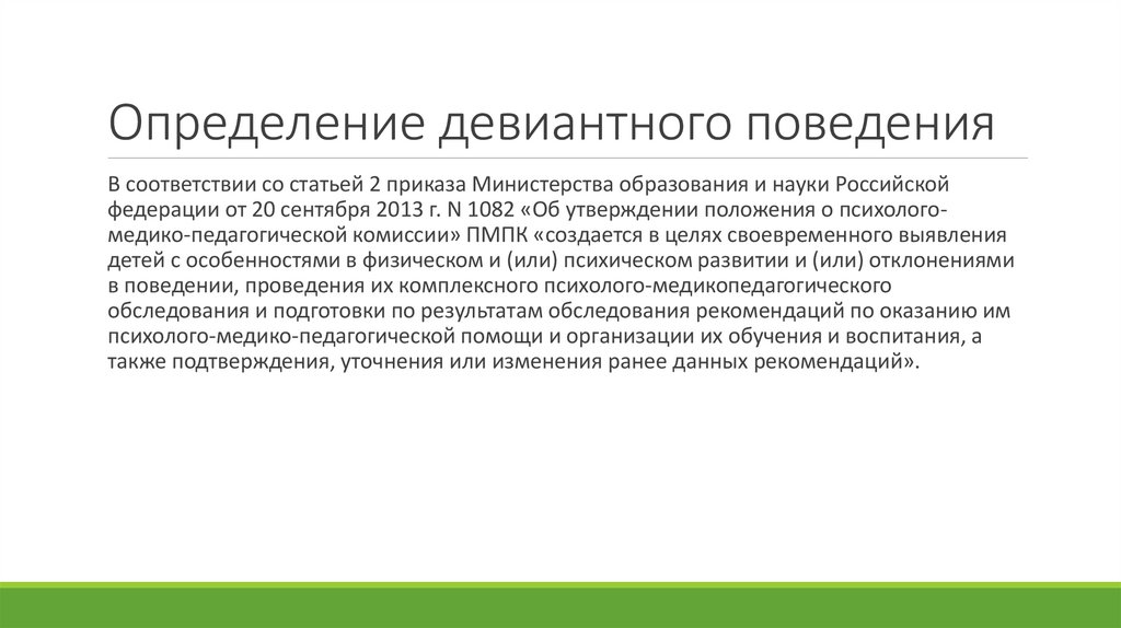 Определение девиантного поведенияВ соответствии со статьей 2 приказа Министерства образования и науки Российской