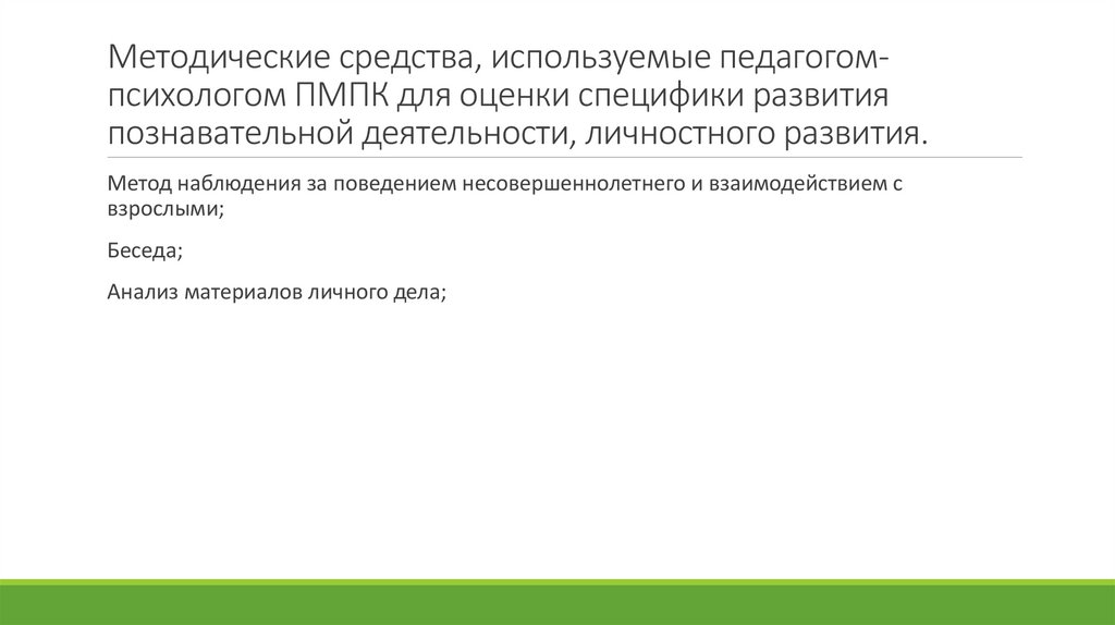 Методические средства, используемые педагогомпсихологом ПМПК для оценки специфики развитияпознавательной деятельности, личностного развития.