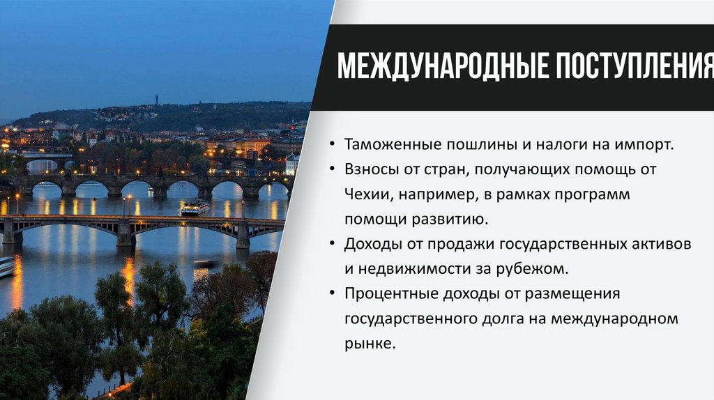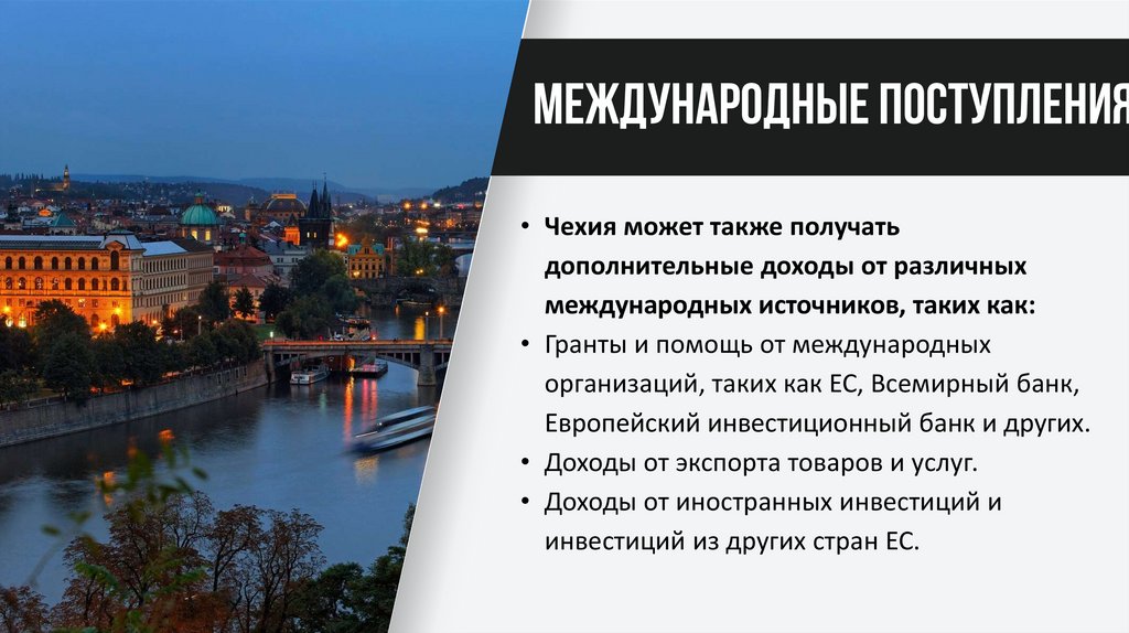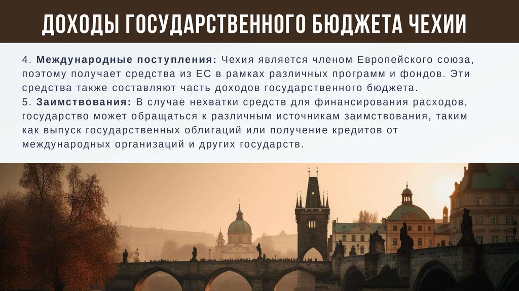 ДОХОДЫ ГОСУДАРСТВЕННОГО БЮДЖЕТА ЧЕХИИ4 . Межд ународные пост упле ния: Чех ия являетс я чле но м Евр о пе йс к о го с о юза ,