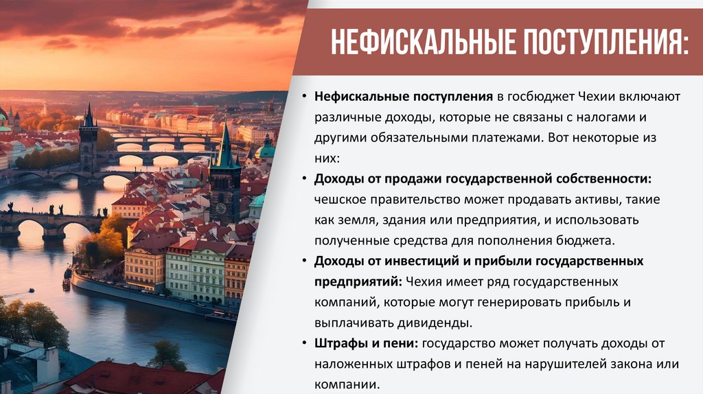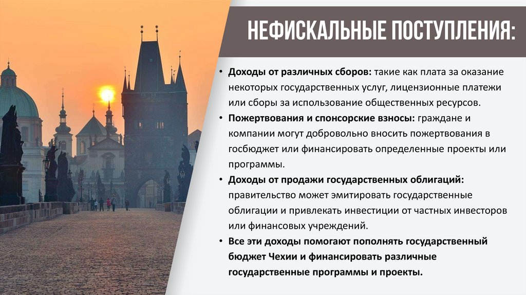 Нефискальные поступления:• Нефискальные поступления в госбюджет Чехии включают