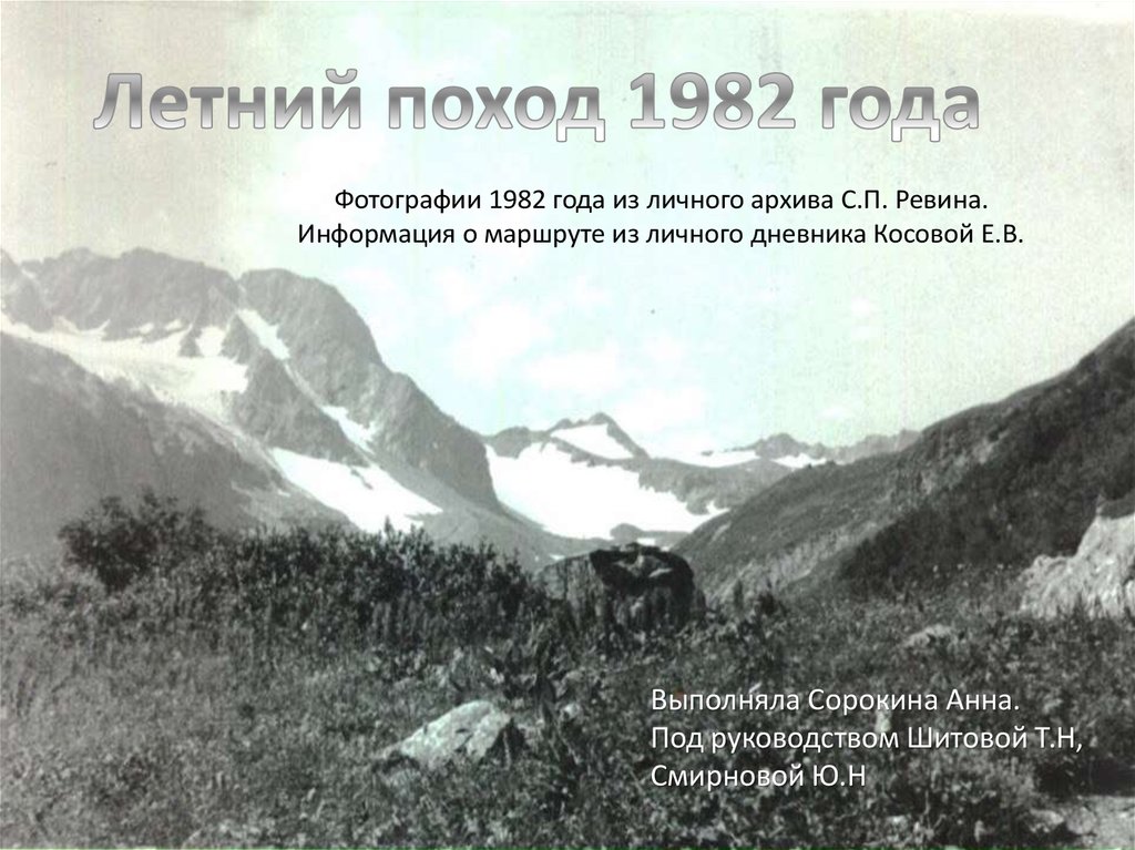 Фотографии 1982 года из личного архива С.П. Ревина.Информация о маршруте из личного дневника Косовой Е.В.