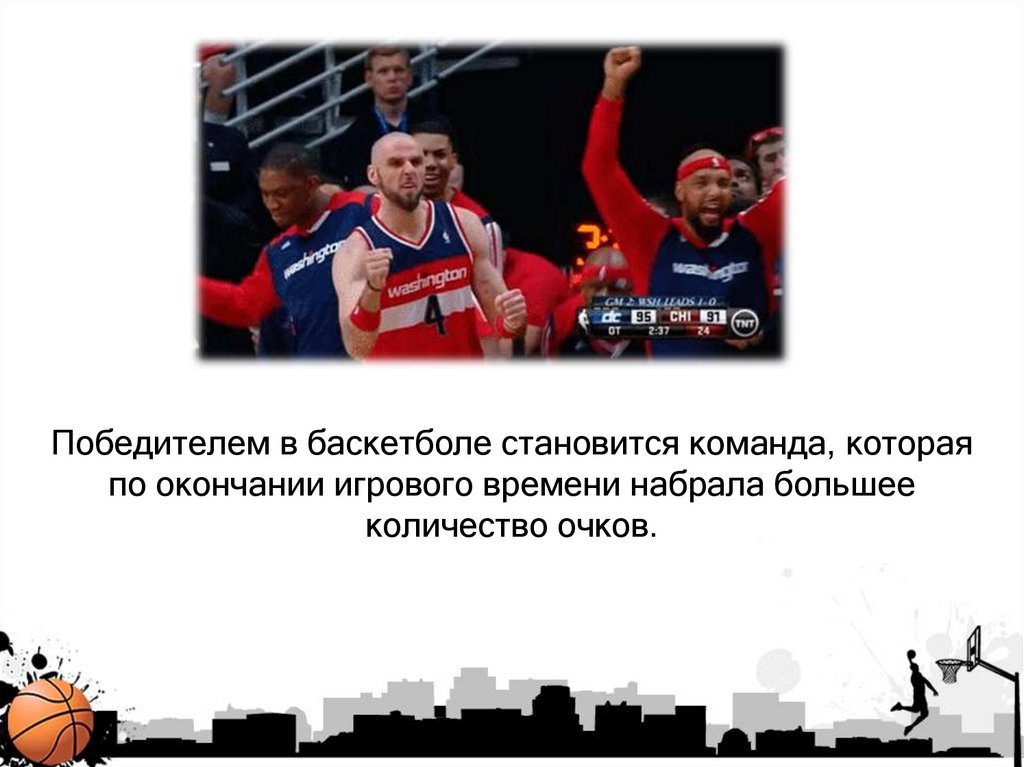 Победителем в баскетболе становится команда, котораяпо окончании игрового времени набрала большее