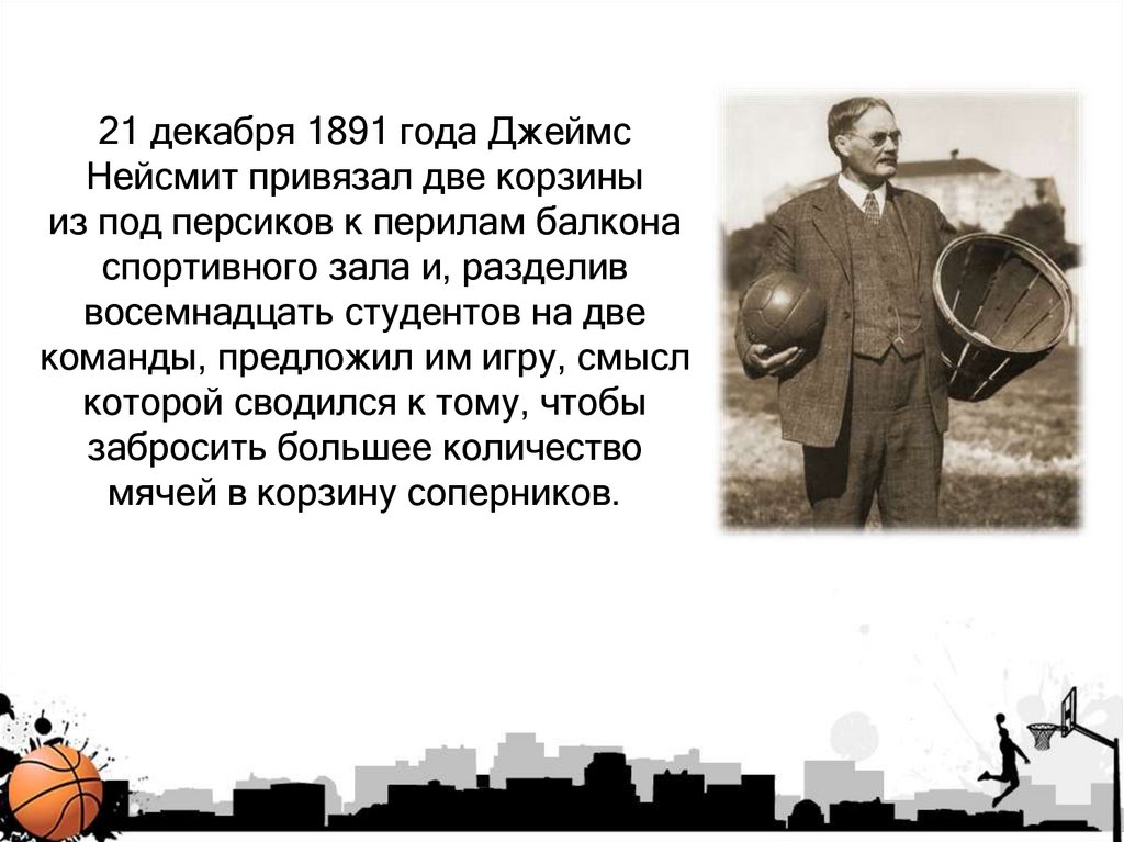 21 декабря 1891 года ДжеймсНейсмит привязал две корзины