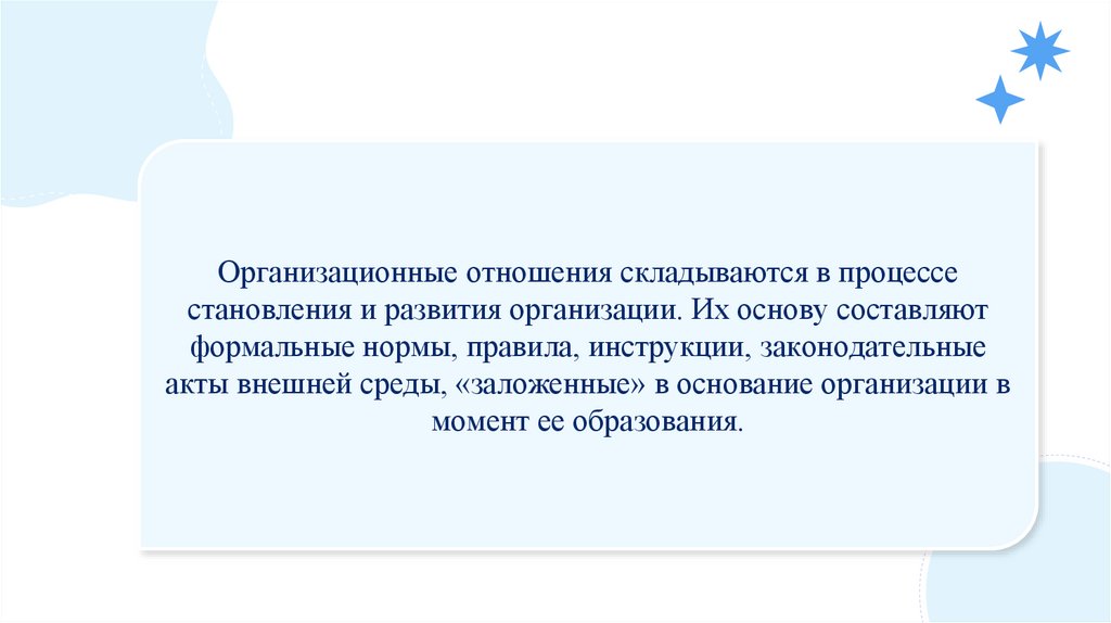 Организационные отношения складываются в процессестановления и развития организации. Их основу составляют