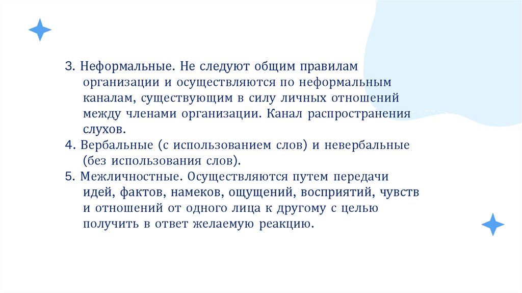 3. Неформальные. Не следуют общим правиламорганизации и осуществляются по неформальным