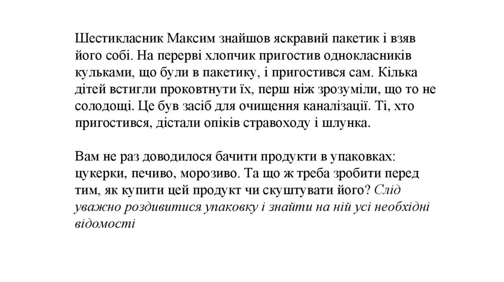 Шестикласник Максим знайшов яскравий пакетик і взявйого собі. На перерві хлопчик пригостив однокласників