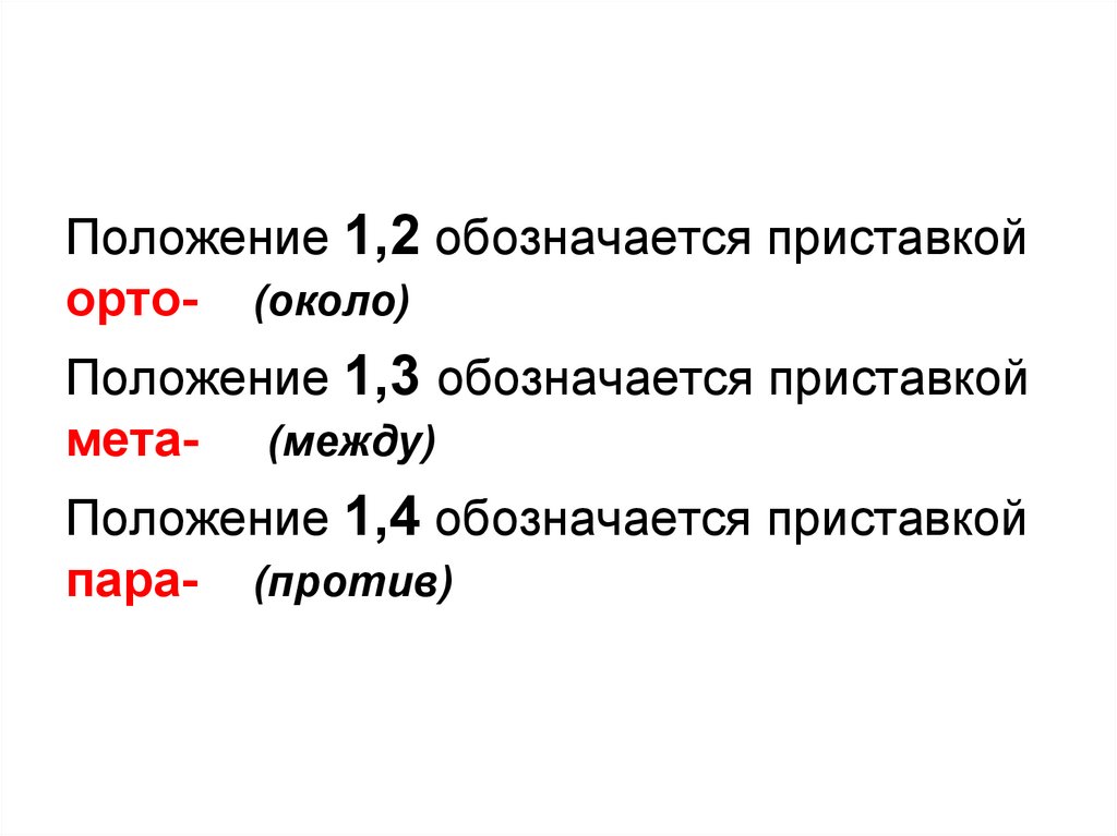 Положение 1,2 обозначается приставкойорто- (около)