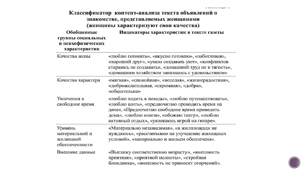 1. Классификатор контент-анализа общая таблица, в которую сведены все
