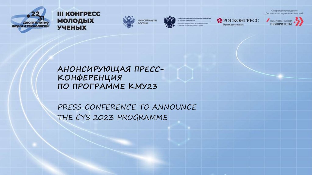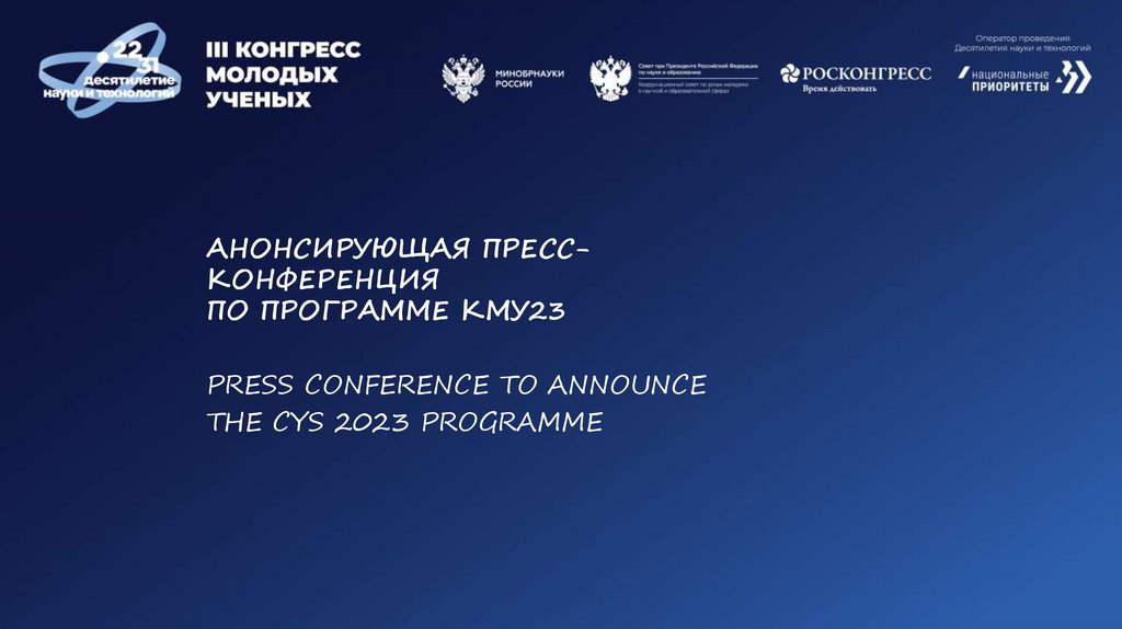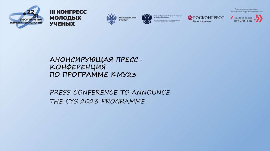 АНОНСИРУЮЩАЯ ПРЕССКОНФЕРЕНЦИЯПО ПРОГРАММЕ КМУ23