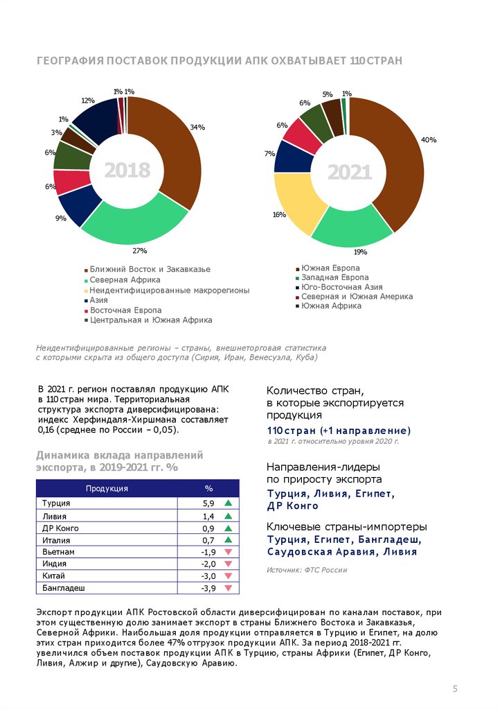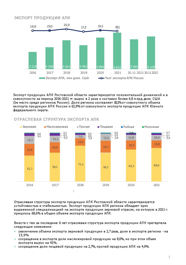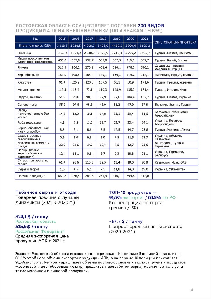 продукции АПК. По итогам 2021 г. регион занял 1 -е место по экспорту пшеницы, ячменя,