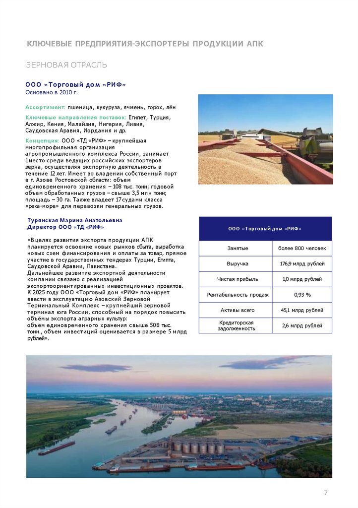 зерновой (АО «Астон», ООО «ТД «РИФ», АО «Агрохолдинг «Степь») и масложировой (АО