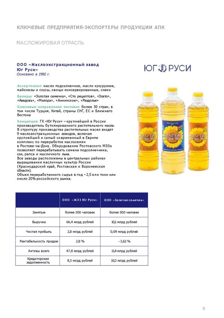 масложировой отрасли, глубокой переработки зерна и инфраструктуры. Всего