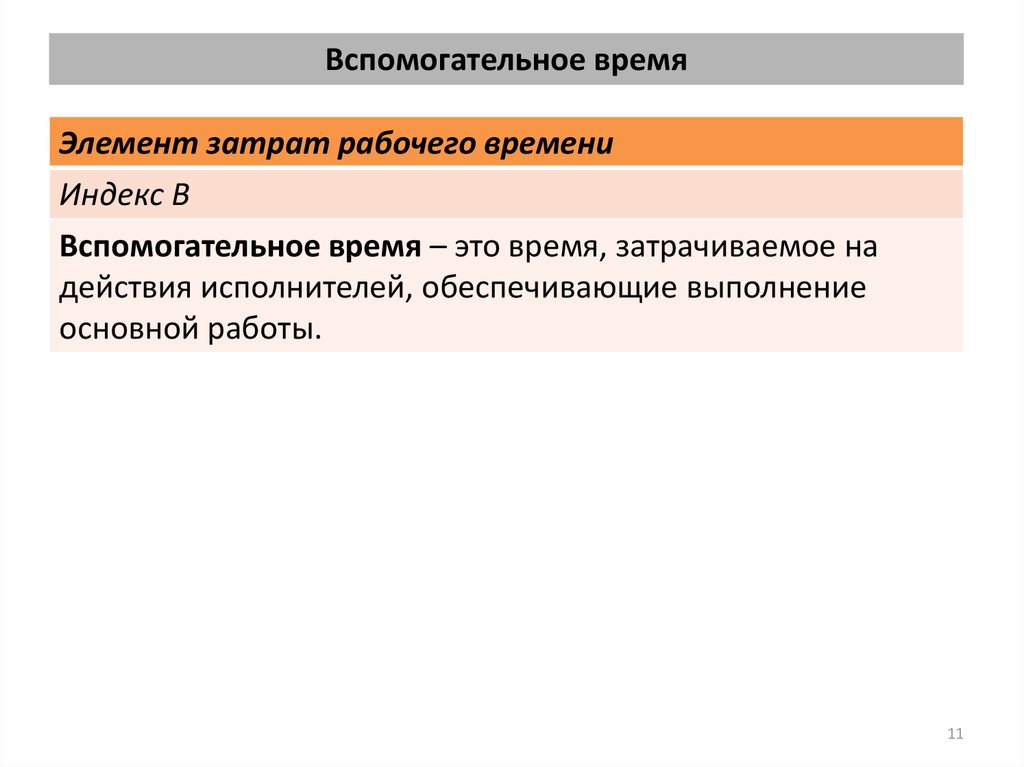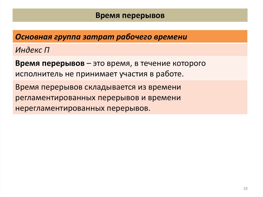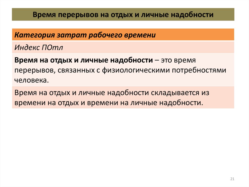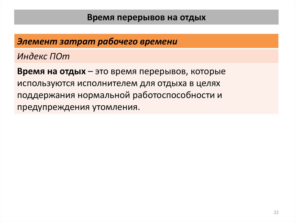 Время перерывов на отдыхЭлемент затрат рабочего времени