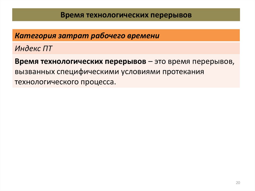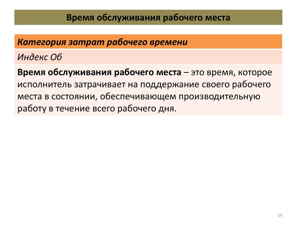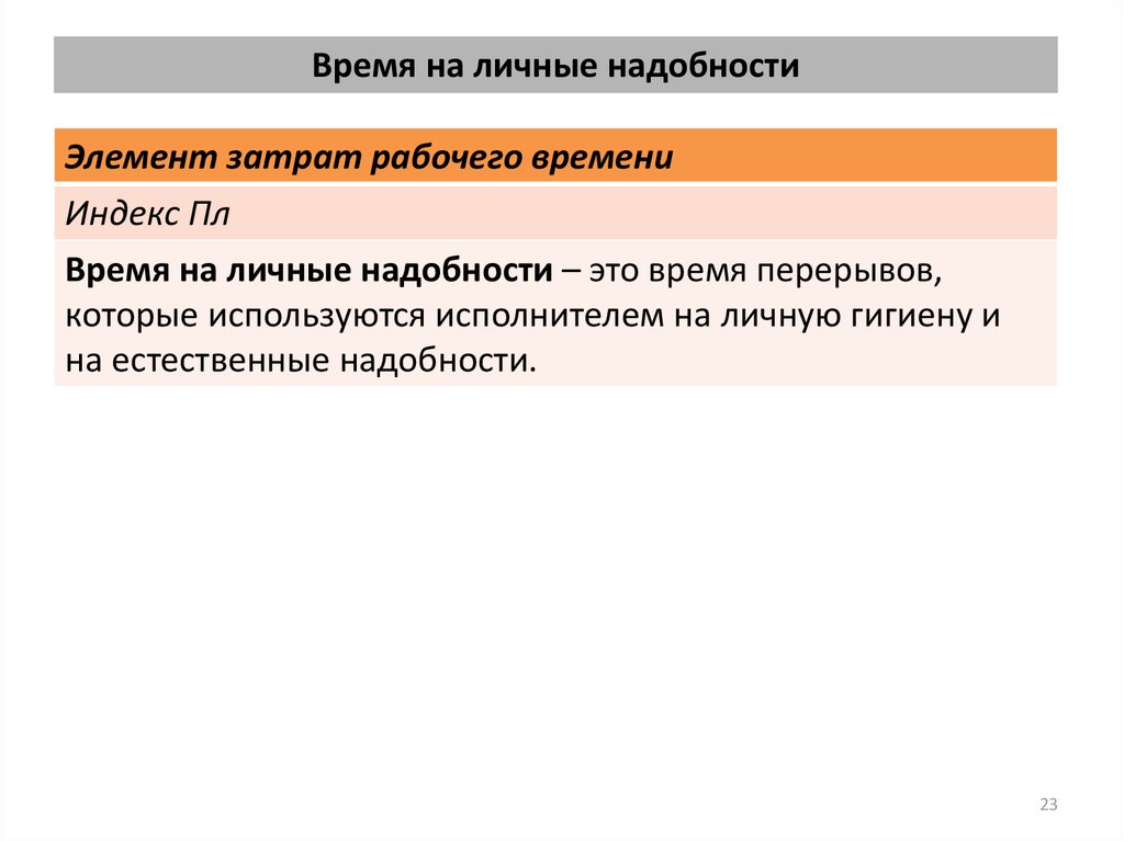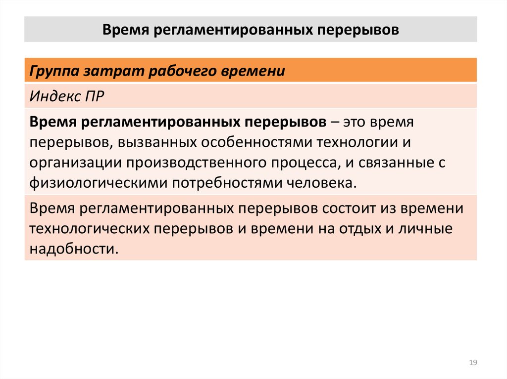 Время перерывов на отдыхЭлемент затрат рабочего времени