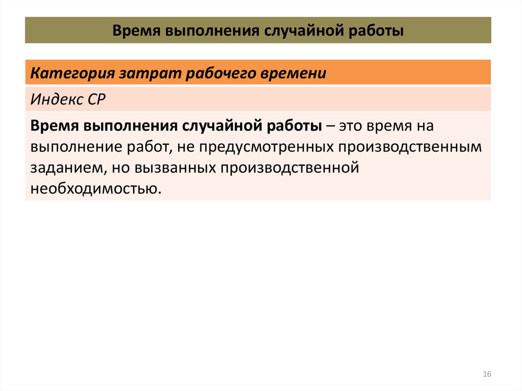 Классификация затрат рабочего времени исполнителяДля обеспечения единого подхода к изучению и учёту