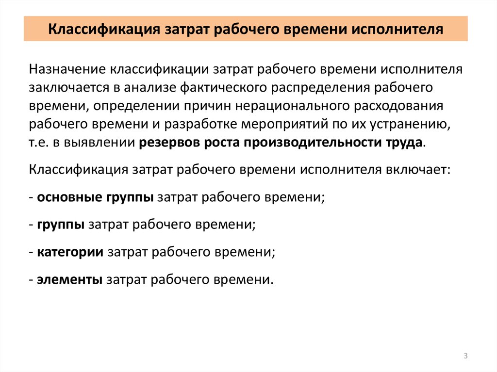 Классификация затрат рабочего времени исполнителяНазначение классификации затрат рабочего времени исполнителя