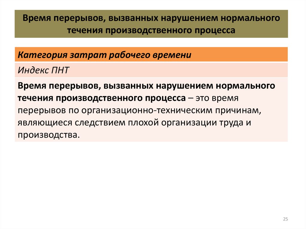 Время перерывов, вызванных нарушением нормальноготечения производственного процесса
