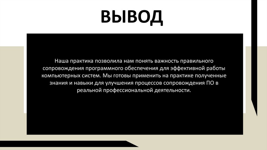 ВЫВОДНаша практика позволила нам понять важность правильного