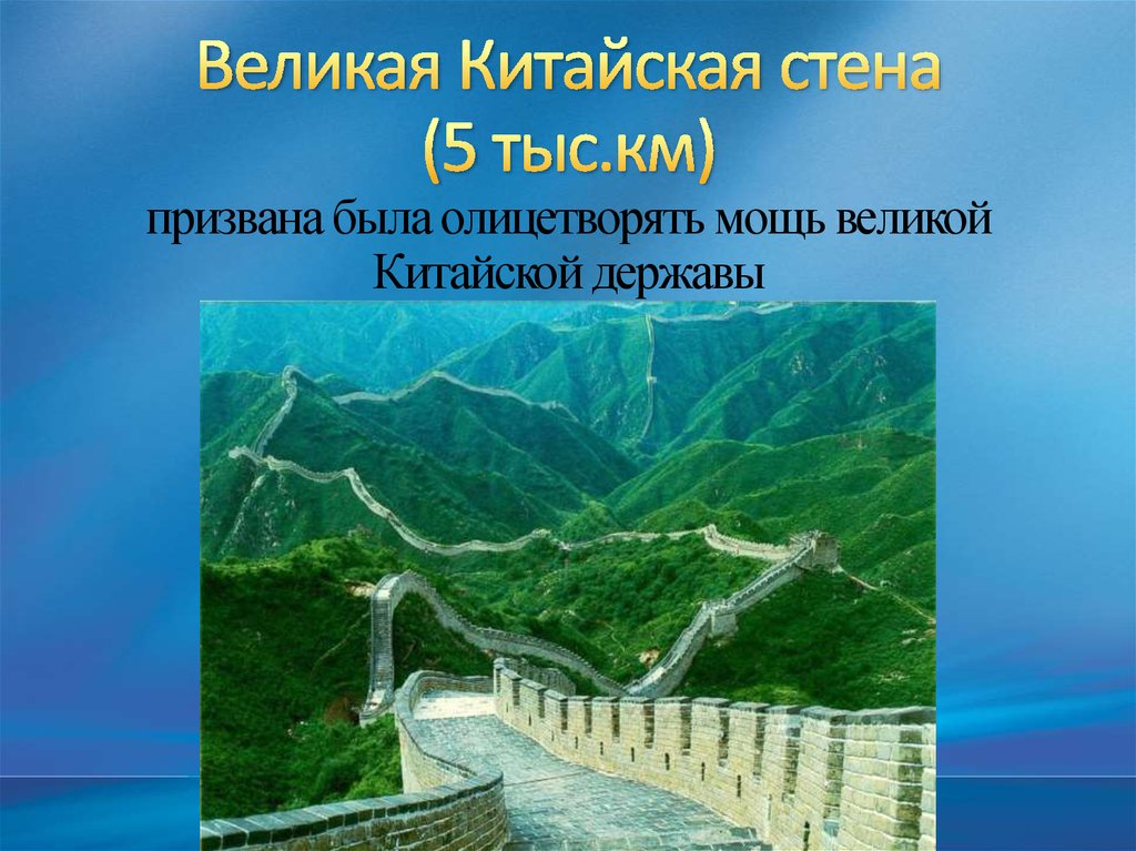 5. Великая Китайская стена (5 тыс.км) призвана была олицетворять мощь великой Китайской державы