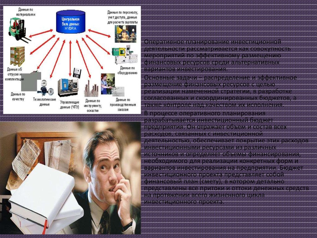 Оперативное планирование инвестиционнойдеятельности рассматривается как совокупность