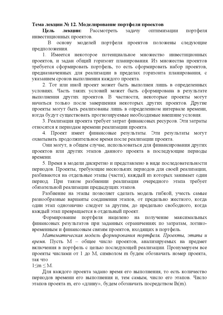 Тема лекции № 12. Моделирование портфеля проектовЦель
