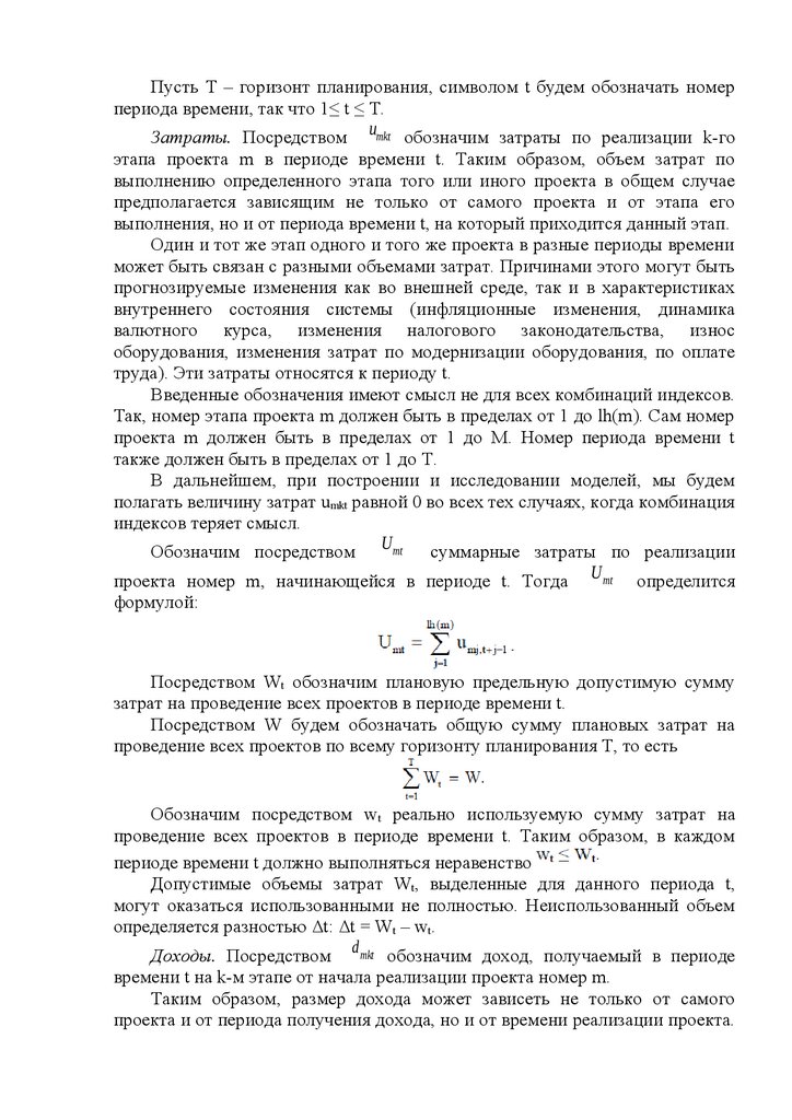 этапа проекта m в периоде времени t. Таким образом, объем затрат по