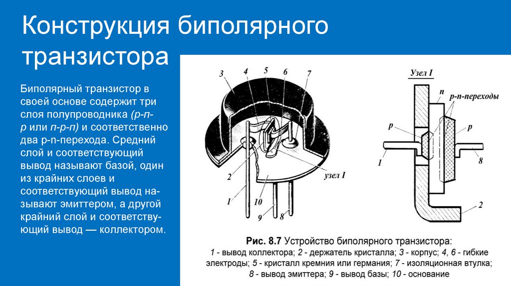 биполярного транзистора основано на использовании носителей заряда обоих знаков (дырок и