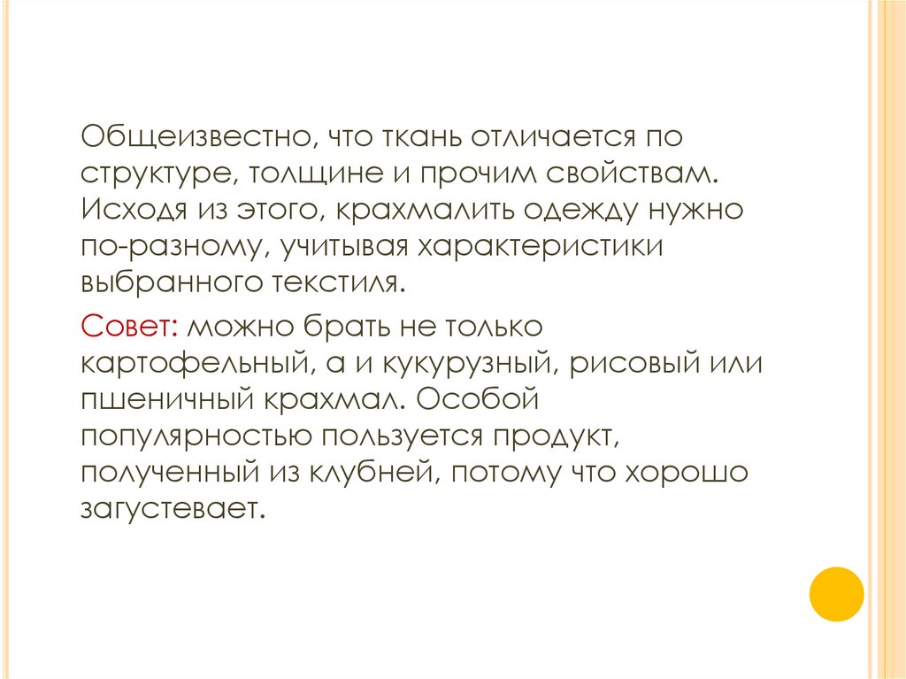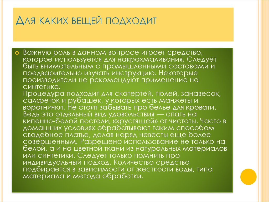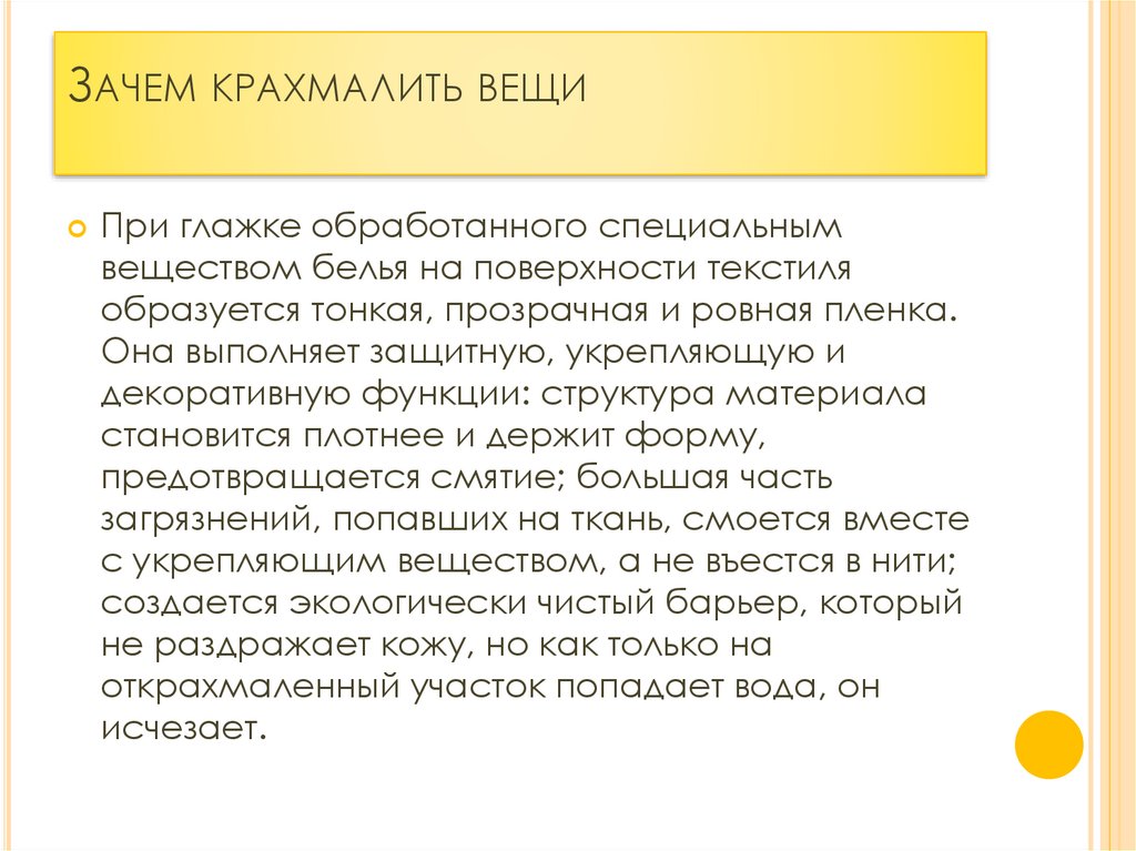 ЗАЧЕМ КРАХМАЛИТЬ ВЕЩИПри глажке обработанного специальным