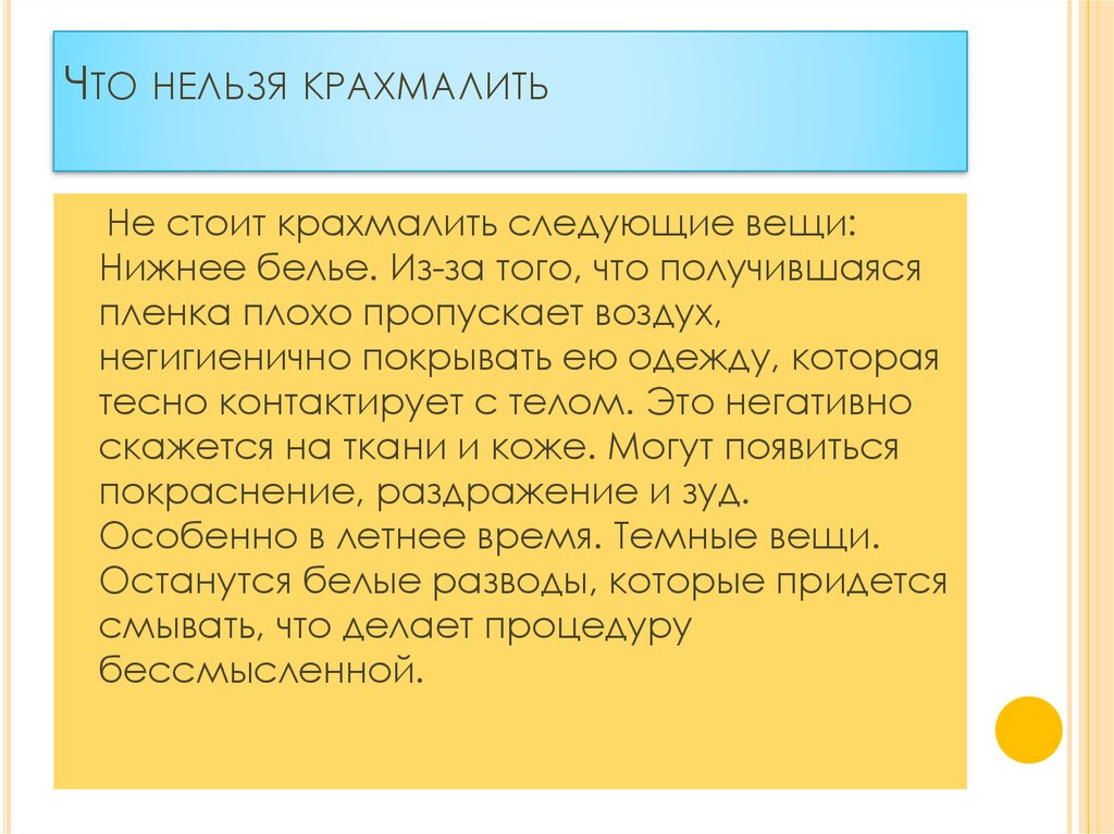 ЧТО НЕЛЬЗЯ КРАХМАЛИТЬНе стоит крахмалить следующие вещи: