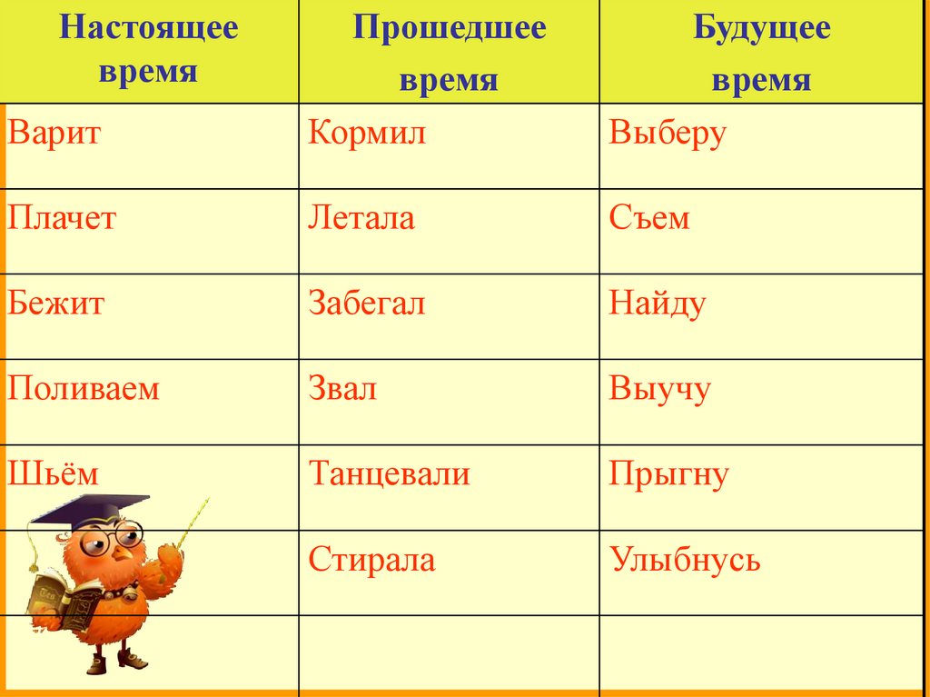 9. Выпишите глаголы из текста и обозначьте их вид и время.