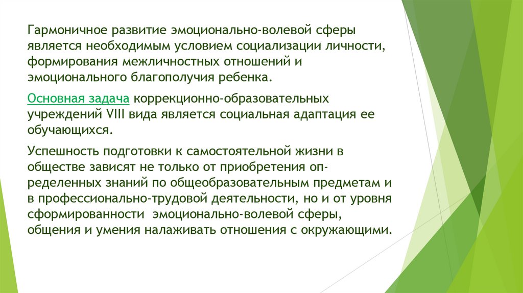 Гармоничное развитие эмоционально-волевой сферыявляется необходимым условием социализации личности,