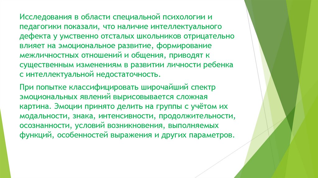 Исследования в области специальной психологии ипедагогики показали, что наличие интеллектуального