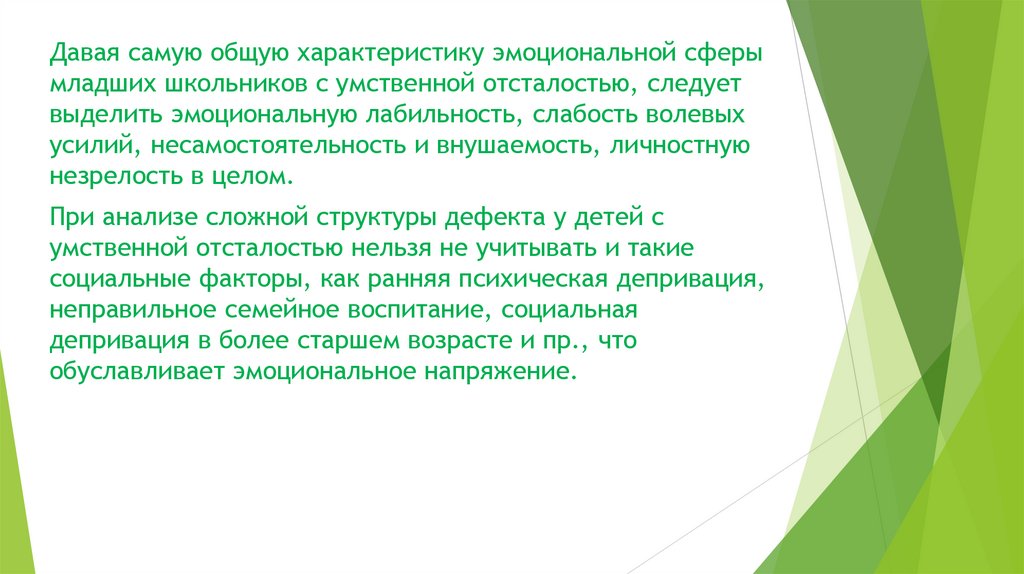 Давая самую общую характеристику эмоциональной сферымладших школьников с умственной отсталостью, следует