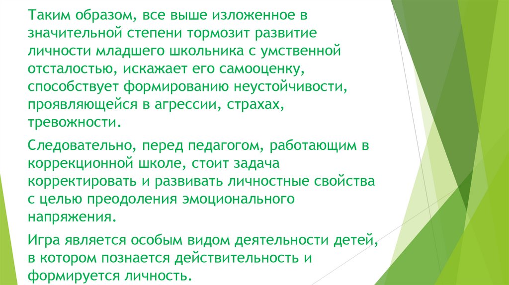 Использование игровых приёмов по снятию эмоционального напряжения младших школьников с умственной отсталостью