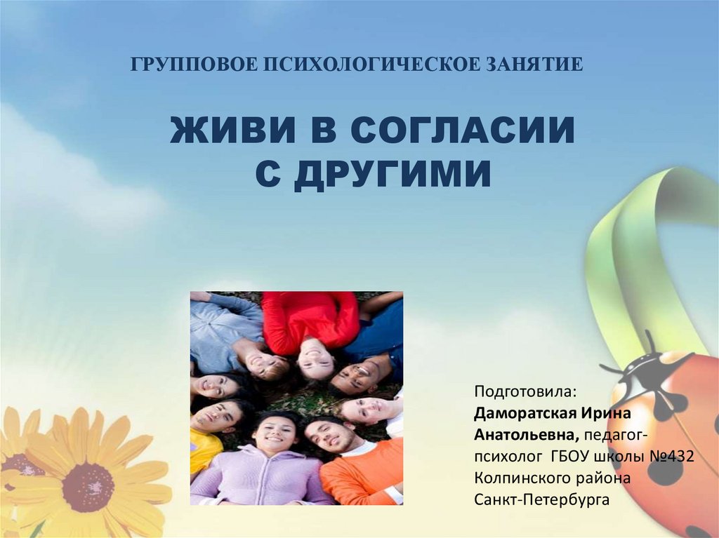ГРУППОВОЕ ПСИХОЛОГИЧЕСКОЕ ЗАНЯТИЕЖИВИ В СОГЛАСИИ