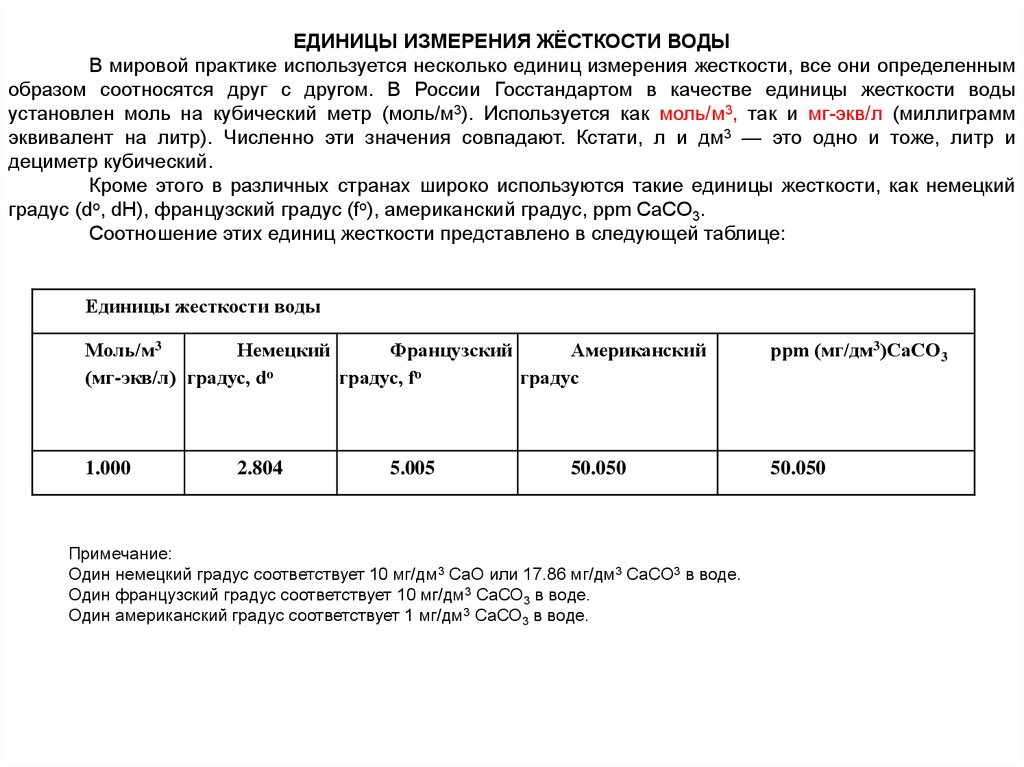ЕДИНИЦЫ ИЗМЕРЕНИЯ ЖЁСТКОСТИ ВОДЫВ мировой практике используется несколько единиц измерения жесткости, все они определенным