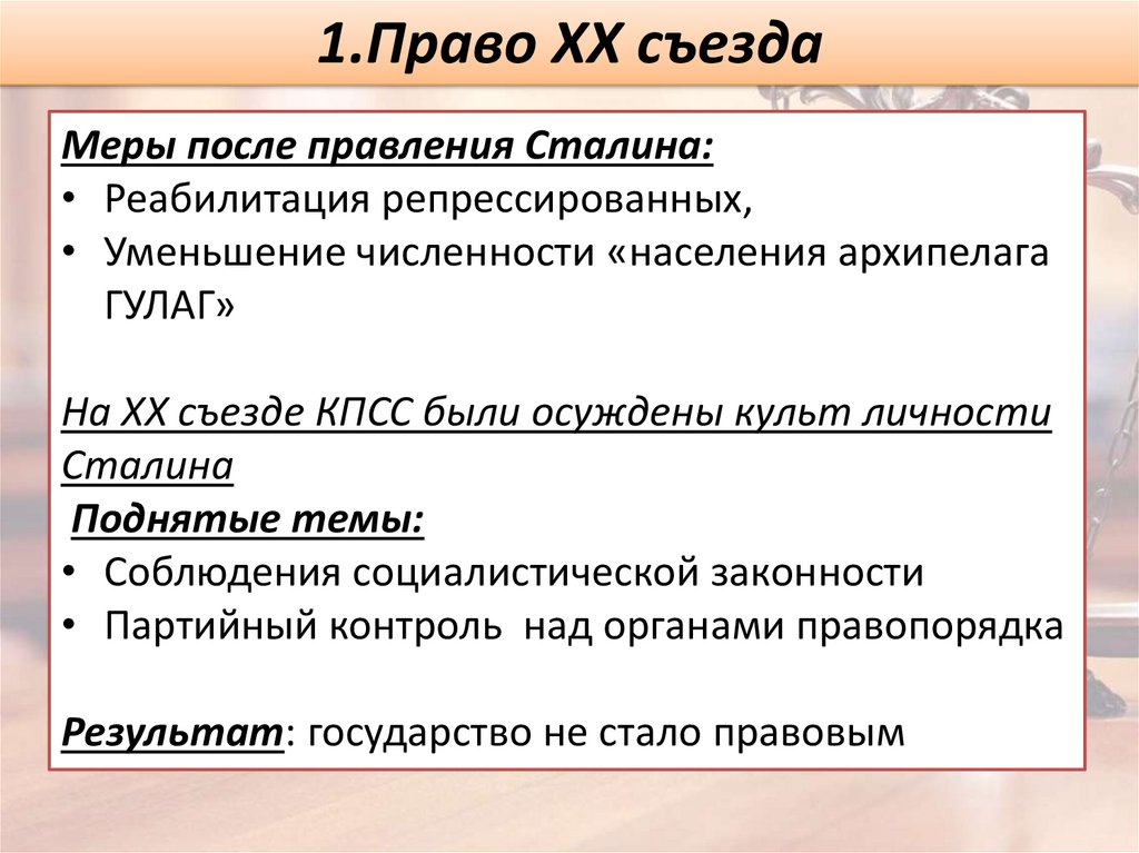 2.Право «оттепели» 1953-1964 гг.ПРАВО