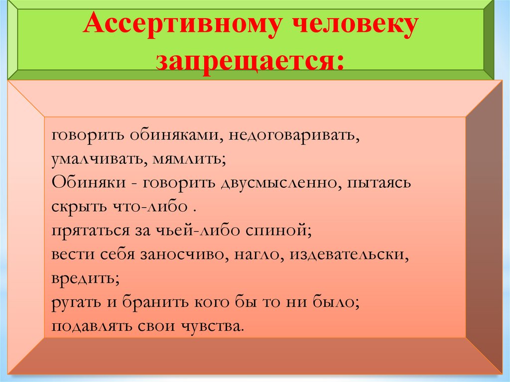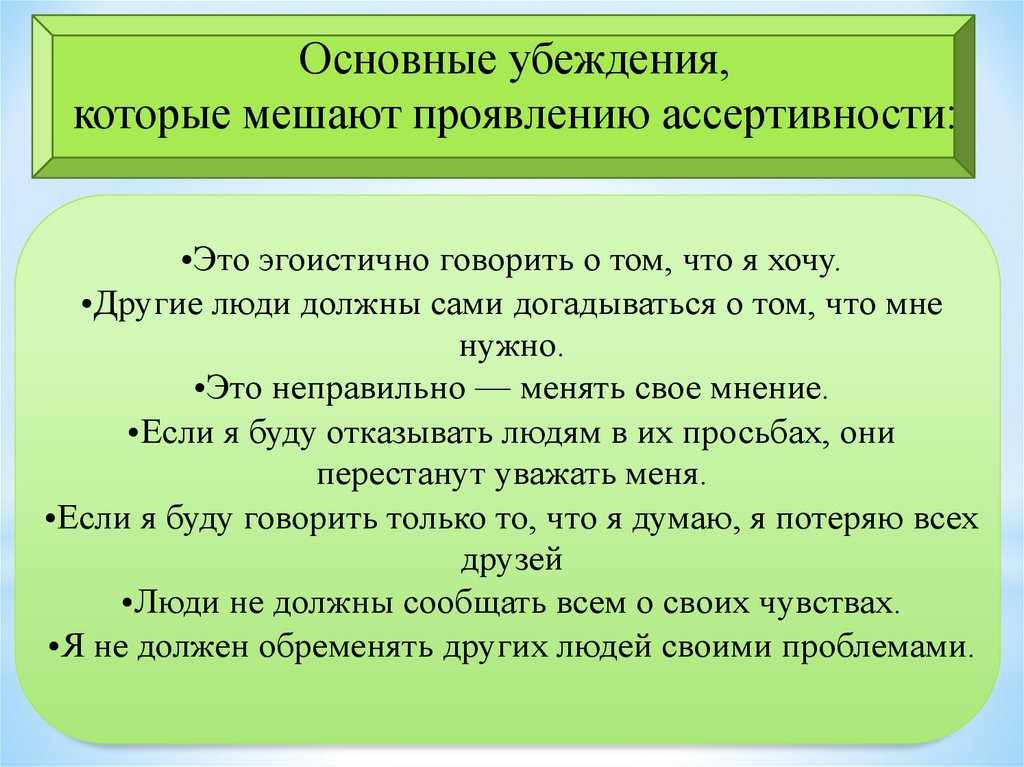 уверенно излагать наши чувства, желания, потребности и мысли.