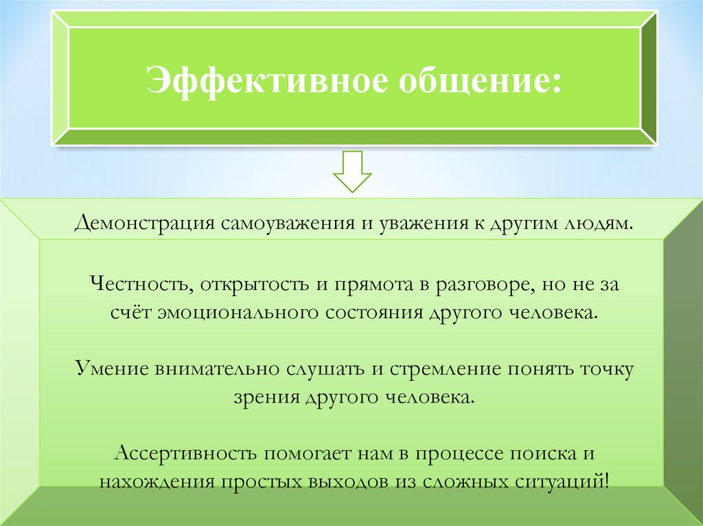 Эффективное общение:Демонстрация самоуважения и уважения к другим людям.